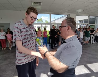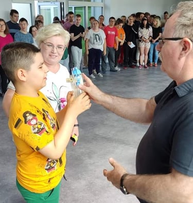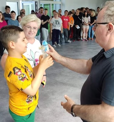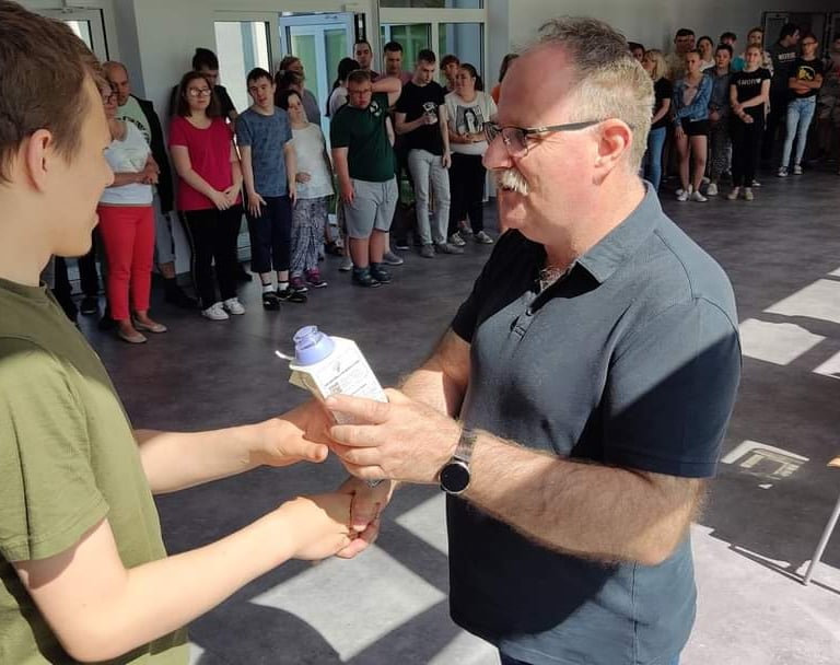 Stowarzyszenie Jesteśmy od wielu lat wspiera działania edukacyjno - wychowawcze. Nasi uczniowie, każdego miesiąca mogą zdobyć tzw. Kartkę korczakowską. Otrzymują ją za wzorową postawę uczniowską, za aktywny udział w życiu szkoły, za pomoc koleżankom i kolegom, za działania wolontariackie. Uczniowie starają się, aby zdobyć kartkę w każdym miesiącu, ponieważ ten, kto otrzyma wszystkie karty, zostaje nagrodzonym. W tym roku Stowarzyszenie w porozumieniu z panią pedagog zdecydowało, że stawia na zdrowie! Dzieci otrzymały butelki filtrujące wodę.